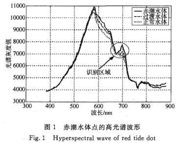 赤潮檢測一般包括兩種技術(shù)手段:暴發(fā)現(xiàn)場檢測和遙感檢測,其中遙感檢測因其具有大面積、同步、成像和相對廉價等優(yōu)勢,在赤潮檢測中扮演著愈來愈重要的角色。衛(wèi)星遙感檢測具有重復(fù)觀測周期長、空間分辨率低和傳感器設(shè)置的波段少等難以克服的缺陷,因此不能進行定量分析,無法對赤潮做出準確檢測,更無法對赤潮進行進一步的分類和識別研究。航空高光譜遙感數(shù)據(jù)具有空間分辨率高、波譜連續(xù)、覆蓋面大的優(yōu)點,特別適合于近岸海域的赤潮監(jiān)測。本文提出的方法,可以提取出高光譜數(shù)據(jù)波形吸收峰和反射峰的特征參數(shù),進而完成對赤潮的識別。