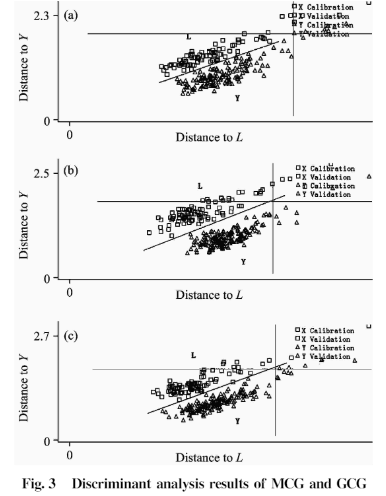 采用近紅外光譜漫反射分析技術,結合主成分分析-馬氏距離法進行判別分析建立了林下山參與園參及不同生長年限林下山參的無損鑒別模型。結果表明,運用近紅外光譜法對林下山參與園參、不同生長年限的林下山參均能正確分類,并實現零誤判。以累計貢獻率和誤判數優選了主成分數。預處理方法為∶采用原始光譜、無平滑識別不同生長年限效果最佳;而采用原始光譜、平滑建立林下山參和園參效果最佳??紤]到10 000~4 000 cm 范圍信息量更全,有利于定性分析因此選擇全波譜范圍建立模型。依據性能指數優選得到的最佳掃描部位均為主根上部。實驗收集的樣品多,來源廣泛,具有代表性,無需復雜前處理。該方法具有準確、快速、無損檢測、成本低、無污染等優點,可實際用于林下山參的質量控制,并提高我國林下山參的市場形象,促進人參市場健康發展。